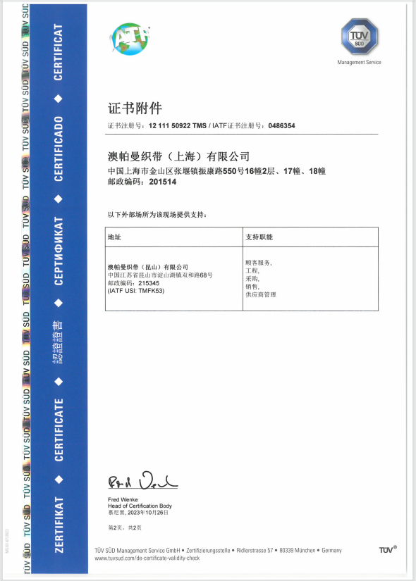 澳帕曼织带(昆山)有限公司是德国E.澳帕曼在中国设立的第一家全资子公司。